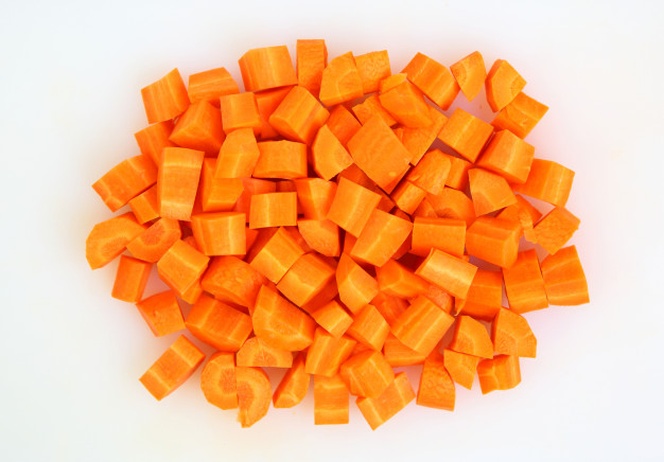 * La zanahoria, una vez que la hayamos pelado, la cortamos en rodajas de un tamaño intermedio así contrastara con el puerro y la cebolla.